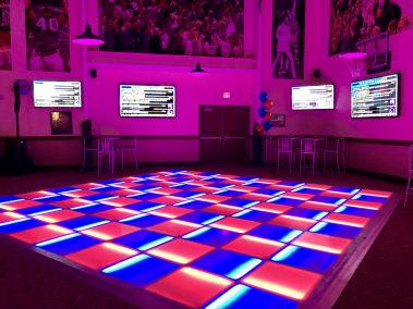 We are the home of North Dakotas only lighted dance floor at only 1.25 inches thick (the worlds thinnest LED floor). Whether you have a DJ, Band, or even a fashion show it will add a stunning wow factor to any event. Included within the rental is setup, a dance floor operator during the event, clean up, and breakdown. Rates are determined by size of the floor needed based off your guest list. Contact us on how you can reserve it for your special event! View videos and photos below.